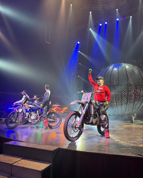 → Globo da Morte com 5 motos e uma apresentação eletrizante dentro de uma esfera de aço, abrilhantada por manobras radicais de Freestyle!
